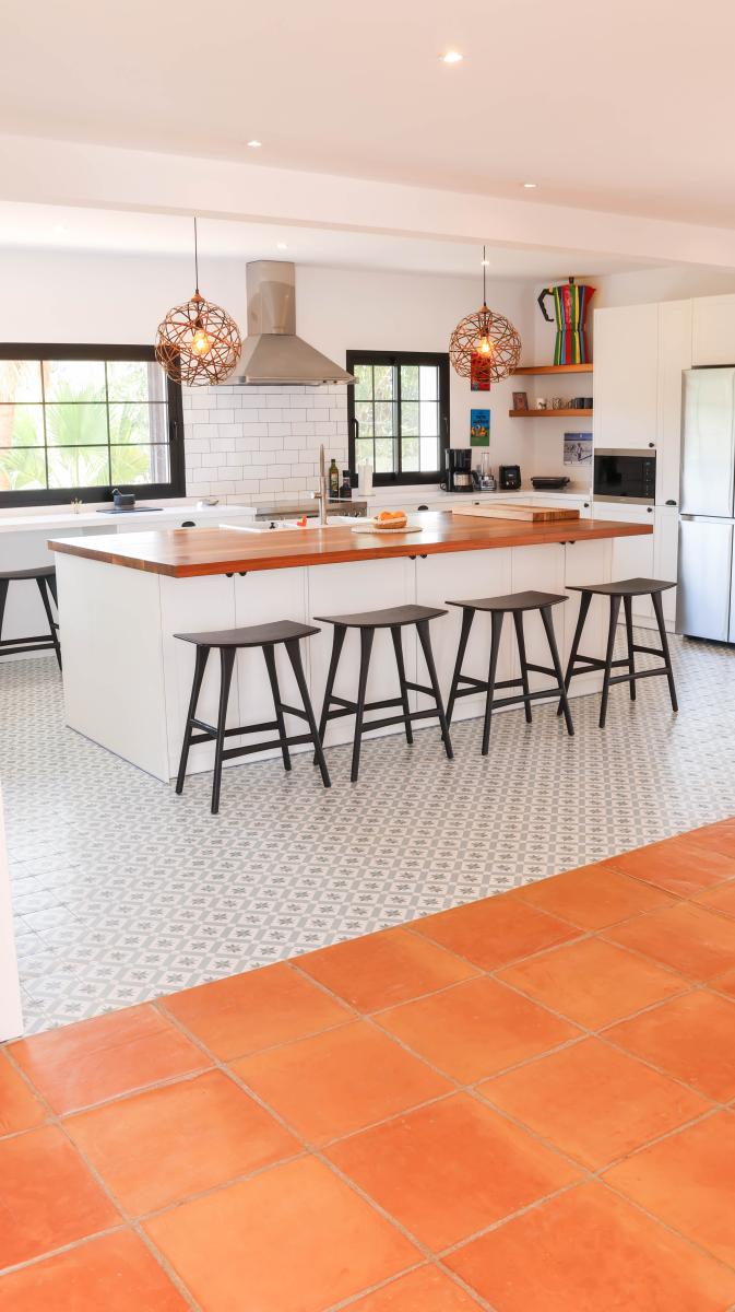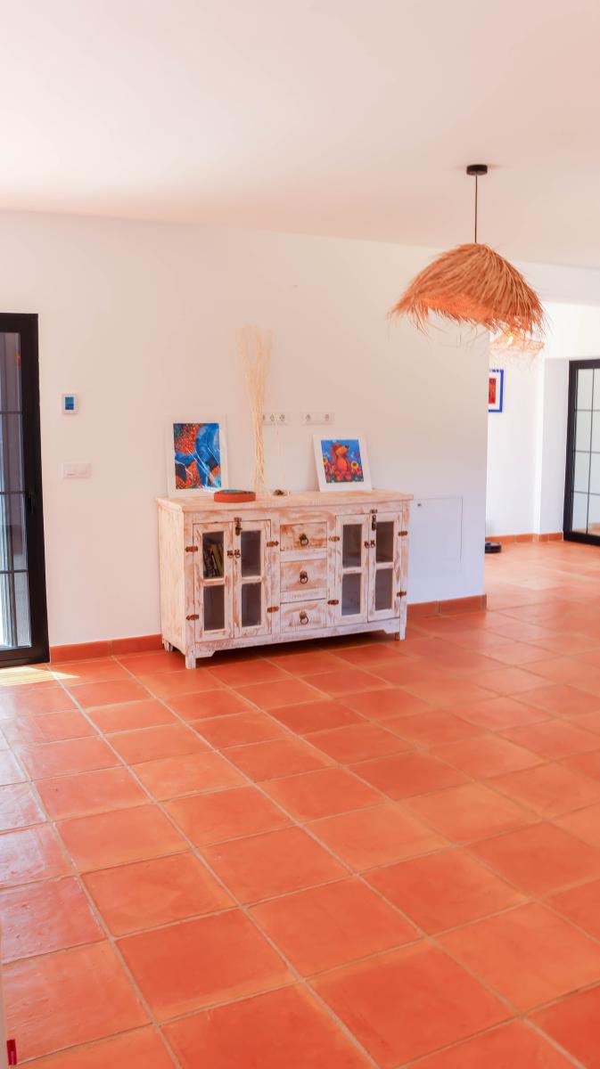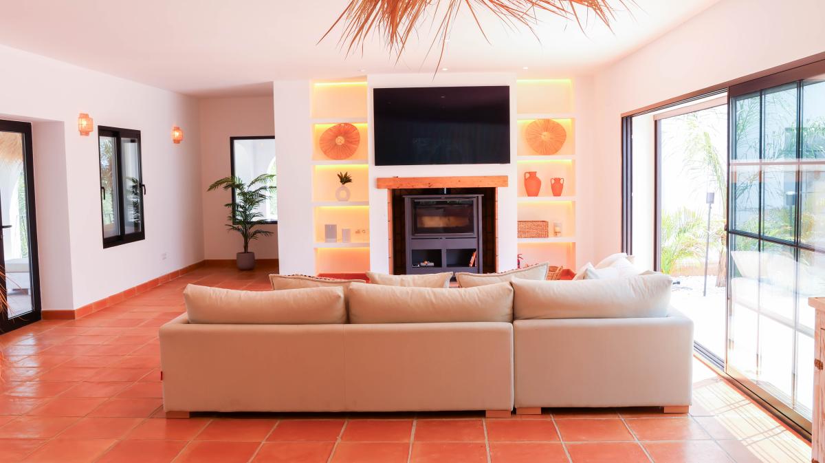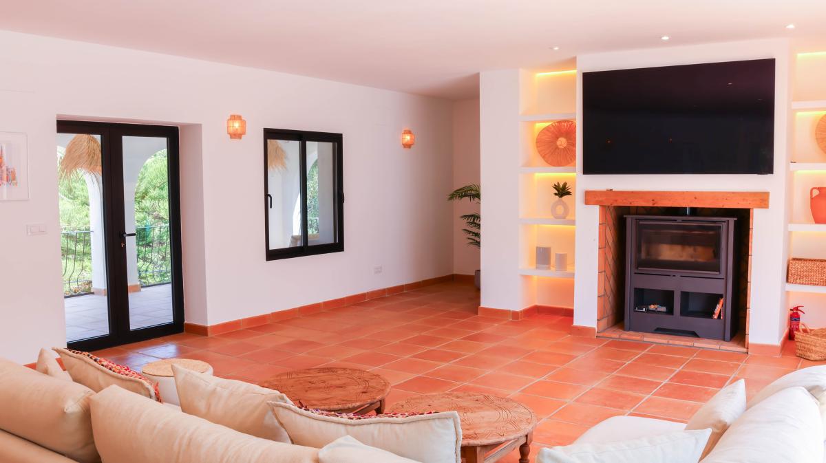 Con capacidad para hasta 8 huéspedes, la villa cuenta con cuatro dormitorios y cuatro baños completos, algunos de ellos con bañera. En su interior encontrarás un salón amplio y luminoso, con zonas de estar confortables, chimenea y ventanales que conectan con el exterior; y una cocina totalmente equipada con electrodomésticos modernos, lavavajillas, zona de comedor y todos los detalles para una estancia sin complicaciones.